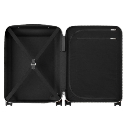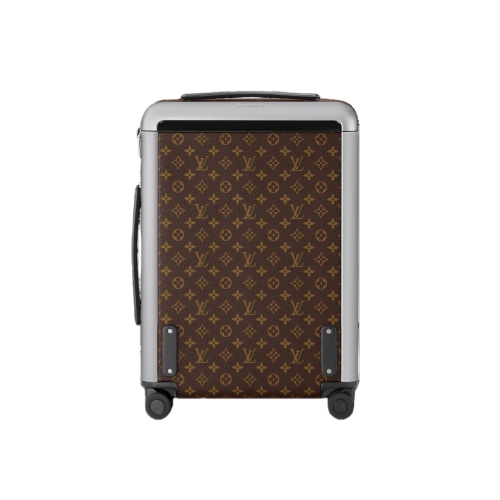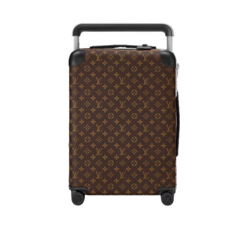 Inspired by the hazel-brown and black striped Macassar ebony wood, Nicolas Ghesquière has paired Monogram canvas with matte black leather and shiny aluminum hardware to create this Horizon 55 hard-sided bag for men. Small enough to use as carry-on luggage, this lightweight 4-wheeled bag boasts a surprisingly large interior thanks to its external handle frame.