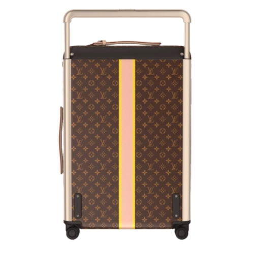 The fruit of a remarkable collaboration between Louis Vuitton and Marc Newson, one of the most influential industrial designer of his generation, the Horizon 70 rolling luggage is fashioned from Monogram canvas with a lightweight, wide trolley system. Part of the Mon Monogram offer, this Horizon can be customized with printed stripes, initials and patches.