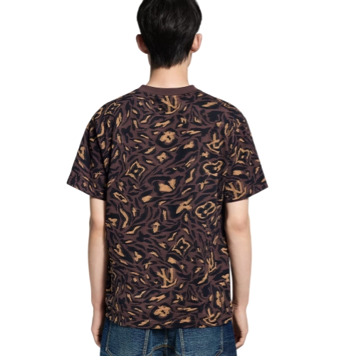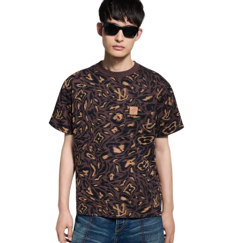 This graphic T-shirt is adorned with the LV Camo motif from the Fall-Winter 2025 show, executed in a complex jacquard jersey incorporating subtle Monogram signatures. Crafted in rich brown tones, it features a smart Marque L.Vuitton Déposée patch in VVN leather on the chest. The light and breathable cotton knit makes this a perfect buy-now-wear-now piece for hot weather.