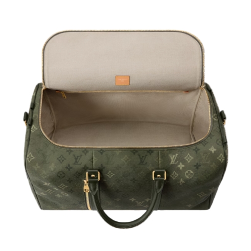 Pharrell Williams brings a trekking vibe to a timeless shape. The Keepall 50 Backpack is reimagined for modern travel in Monogram Surplus coated canvas, with its camouflage feel. The square shape and multiple carrying options make it adaptable. A zipped front pocket offers quick access to essentials and stores the detachable straps.