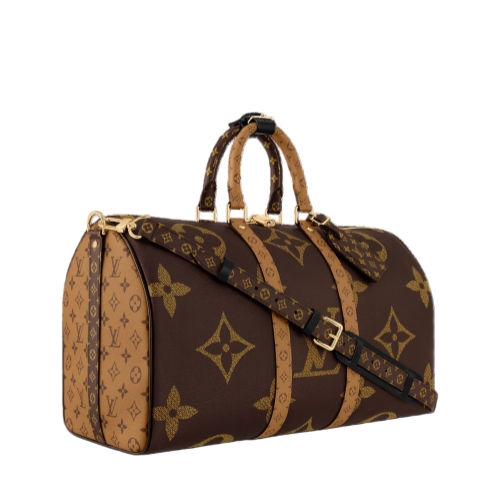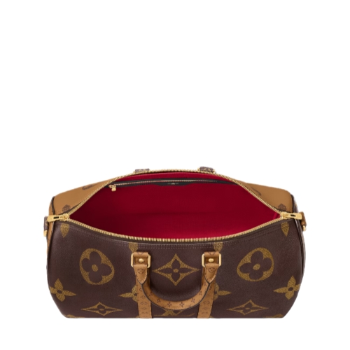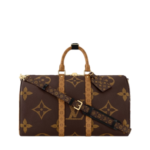 Fashioned from Monogram Giant coated canvas with trim in Monogram Reverse, this Keepall Bandoulière 45 celebrates one of the House’s most emblematic patterns. Lined in sumptuous red textile, the interior boasts a zipped pocket. A removable and adjustable leather strap, in addition to two top handles, give carry options.
