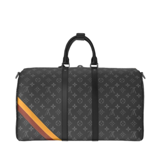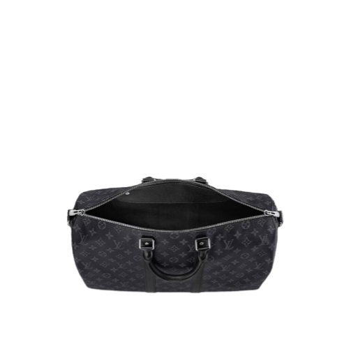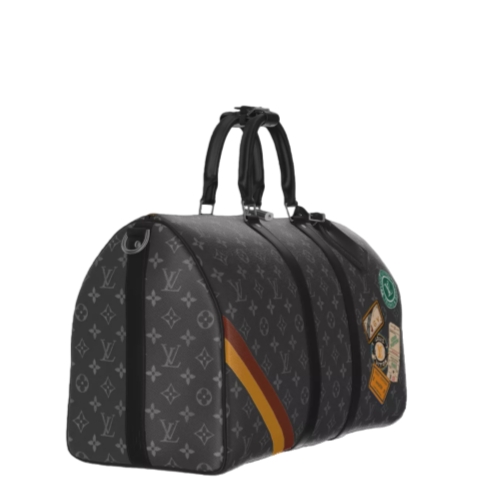Fashioned from black-and-gray Monogram Eclipse canvas, this Keepall Bandoulière 45 can be customized with Mon Monogram details to make each bag unique with colorful stripes, patches, and initials. Since 1930, the Keepall duffle has journeyed alongside generations of elegant globetrotters. This version features a silver-toned padlock, comfortable leather handles, and a removable strap that adjusts for casual cross-body and shoulder carry.