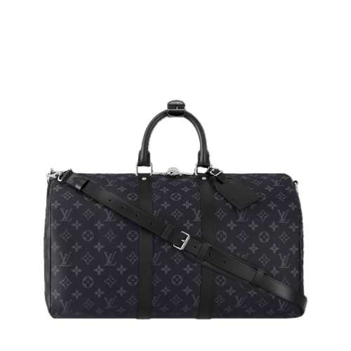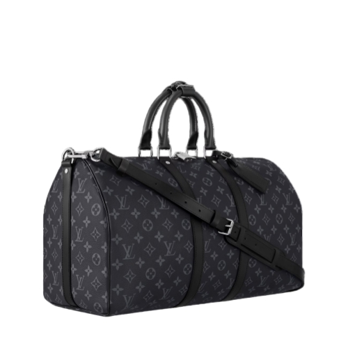 This iconic Keepall 45 Bandoulière is fashioned in our new iconic black and grey Monogram Eclipse canvas. Since 1930, the Keepall duffle has journeyed alongside generations of elegant globetrotters. This version – with comfortable-to-hold leather handles, a strap for casual cross-body wear and a gleaming padlock – holds all the essentials for an overnight jaunt.