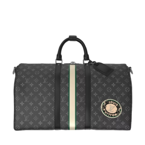 This Keepall Bandoulière 50 in Monogram Eclipse canvas embodies the epitome of modern travel. Those adept at the art of packing can fit a week's wardrobe into the Keepall’s generously sized interior. Part of the Mon Monogram program, this Keepall can be personalized with stripes, initials and patches.
