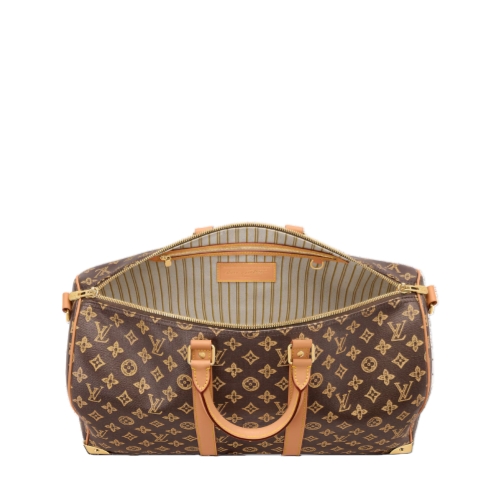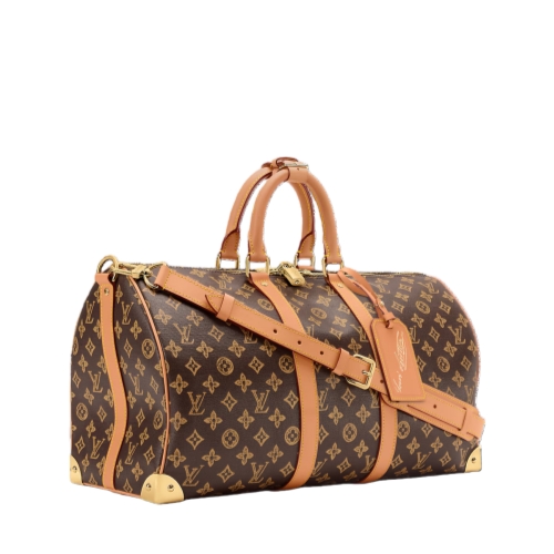 The Keepall 45 Trunk is made from Monogram Origine canvas, a heritage-inspired Monogram pattern on a linen and cotton blend. It’s trimmed with cowhide leather and lined in striped textile. The gold-tone hardware, including reinforced corners and a padlock, adds a refined touch. Compact enough to fit under most airline seats, it’s perfect for short trips.