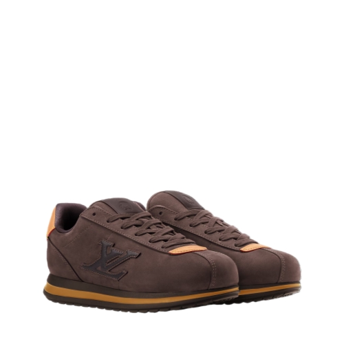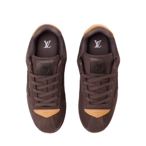 The LV Buttersoft sneaker is revisited in grained nubuck calf leather with water-repellent properties. This refined model, whose vintage look nods to the 1960s, is a testament to the expertise of the House's Italian craftsmen, who work its leather into a softly padded upper. Key details are the natural leather trim and the dynamic LV Initials on the side.