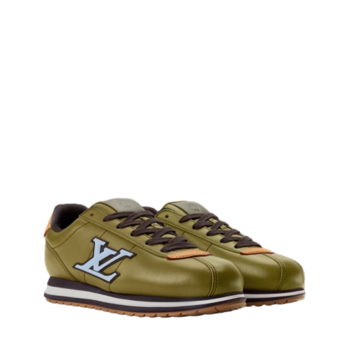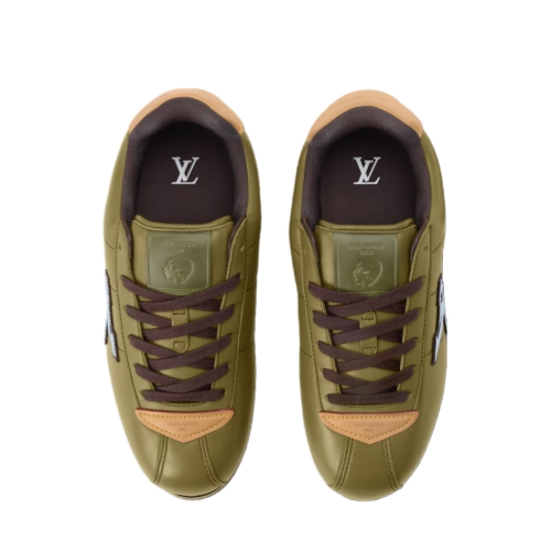 With its uniquely soft combination of lamb and calf leather, the LV BUTTERSOFT sneaker fuses the comfort of a sneaker with the craftsmanship of a formal shoe. The House's Italian artisans demonstrate their skill by creating its cushioned upper, which is trimmed with emblematic natural leather and signed with the LV Initials. The tongue bears the profile of Men's Creative Director Pharrell Williams.