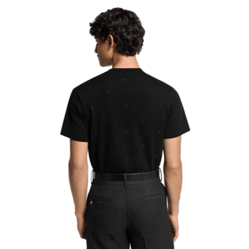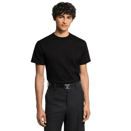 This black short-sleeved crewneck brings an elegant signature accent to a look. Crafted in light, close-knit organic cotton, it is adorned with an LV Blason motif, which is embroidered all over in lustrous black yarn. This timeless and versatile mid-season style can complete both casual and more formal ensembles.