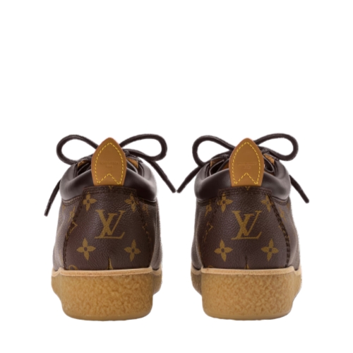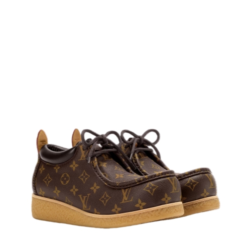 The LV Bubble Gum derby comes in Monogram grained calf leather with a contrasting padded collar in plain calf leather. Combining practicality and fashion appeal, this model is notable for its chunky yet lightweight rubber outsole, which offers all-day comfort and support. The natural leather back tab references Louis Vuitton leather goods.