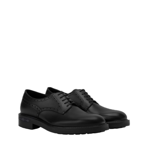 Inspired by the classic look of British city gentlemen, the LV City derby in calf leather brings a modern twist to the timeless business shoe. The upper is decorated with brogue-style perforations in the shape of Monogram Flowers, while the heel features a distinctive detail in Monogram canvas. This model is finished with a robust rubber outsole.