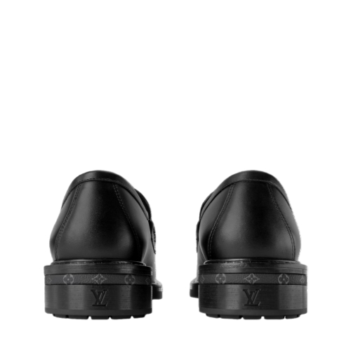 The LV City loafer in smooth calf leather brings a modern twist to a classic style with its refined signatures and robust outsole. The vamp is embellished with an LV Initials accessory, while the heel features a distinctive detail in Monogram canvas. The rubber outsole provides optimum comfort and durability.