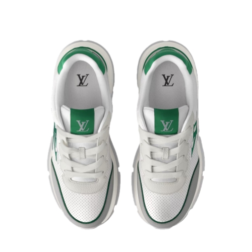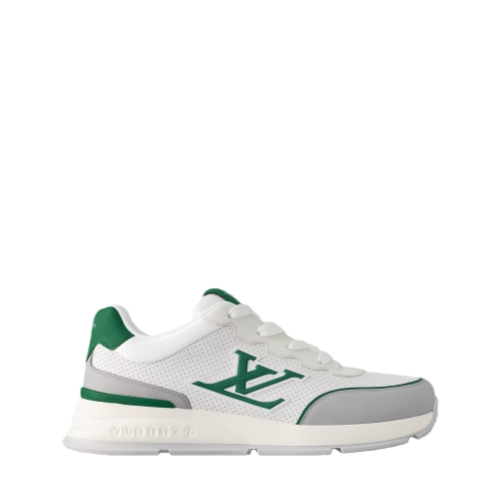 The LV Classic sneaker is made of smooth calf leather with pinpoint perforations creating a refined look. The upper is complemented by touches of color, notably on the large LV Initials on the side and the leather trim at the back, which is stamped with the Louis Vuitton signature. A lightweight rubber outsole completes this model.