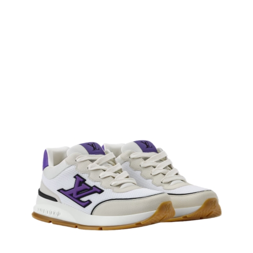 This stylish two-tone edition of the LV Classic sneaker combines technical mesh with colorful grained calf leather. Key details are the dynamic LV Initials, introduced by Men's Creative Director Pharrell Williams, as well as the Vuitton signature on the chunky rubber outsole. This easy-to-wear design is versatile enough to complement a wide range of looks.