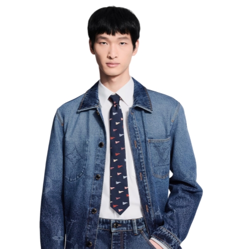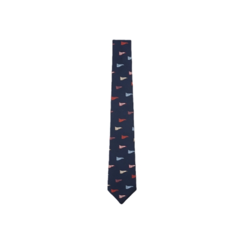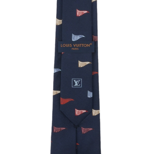 The LV Club flags tie is a worthwhile addition to even the most staid wardrobe. Made in Italy, the deep navy style is printed with multicolored pendants, each one filled with "VUITTON" in a contrasting hue and overflowing with cheer. It is fashioned from 100% silk, combining luxury with play.