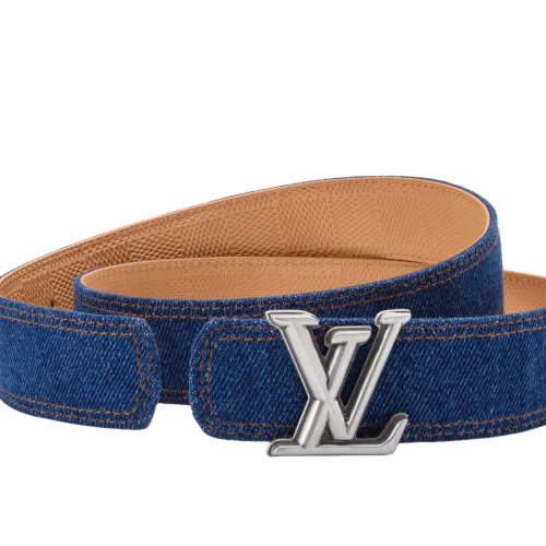 The LV Dimension Denim 35mm reversible belt is a fashion-forward style with classic undertones. With a vintage-inspired denim on one side, the strap is embossed with the Damier Heritage print on the camel-toned, leather reverse. This plus the palladium belt buckle make for a timeless piece.