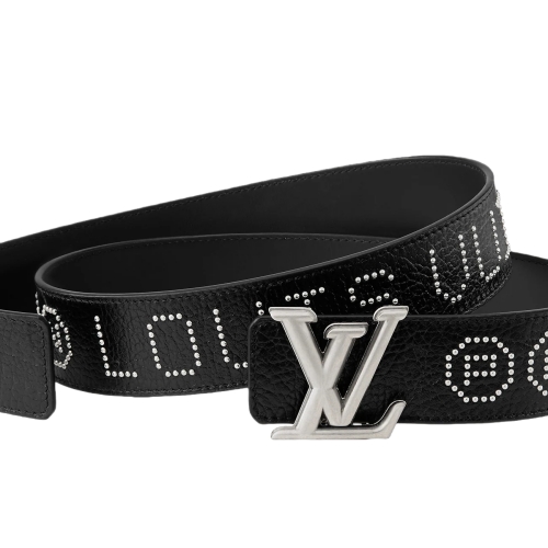 The black LV Dimension Rockabilly Studs 40mm Reversible Belt is bold yet thoughtfully showcases its vintage and modern influences. LOUIS VUITTON and P and N, for Pharrell Williams and his collaborator Nigo, encircle one side of the leather strap in small, silver-toned studs.The simple buckle grounds this intricate detail and complements the plain reverse.