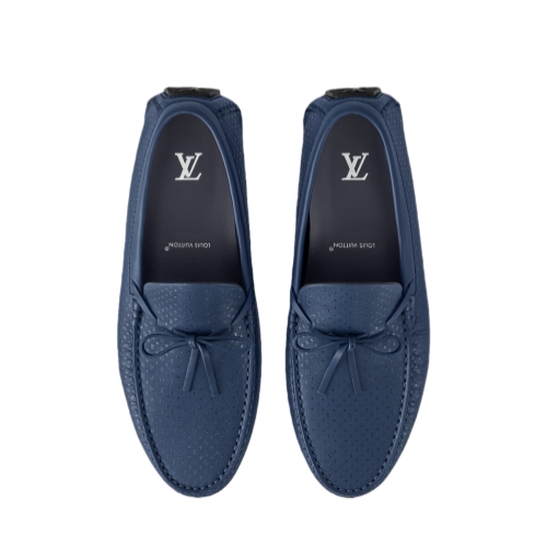 This seasonal edition of the LV Driver moccasin is crafted from supple calf leather discreetly embossed with a miniature version of the Louis Vuitton Monogram pattern. This car shoe has a hand-stitched vamp and a tubular construction for comfort and lightness, both testaments to the House's shoemaking know-how. It is finished with a flexible rubber-pad outsole.