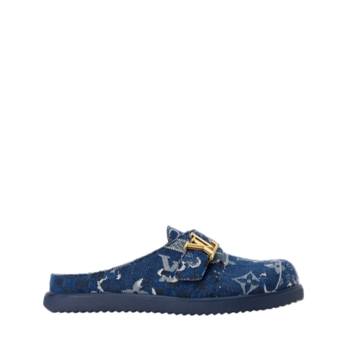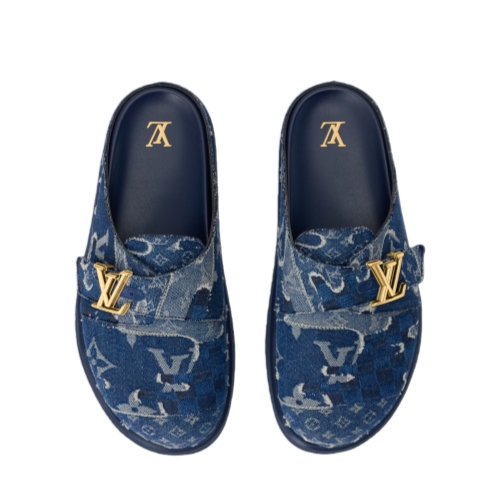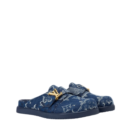 Influenced by the Japanese aesthetic of the Fall-Winter 2025 men's show, this exclusive edition of the LV Easy mule combines Monogram and Damier signatures on a denim patchwork with a landscape-like effect, which also nods to the Japanese boro mending technique. This easy-to-wear, slip-on style has an adjustable strap with an LV Initials accessory and a lightweight EVA outsole.