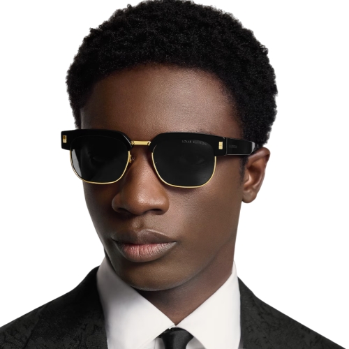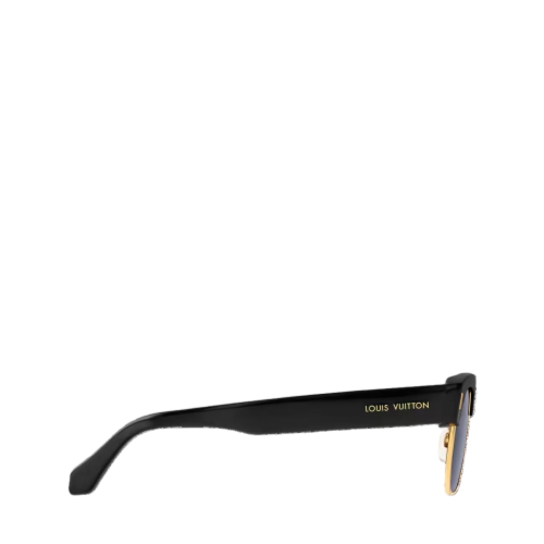 The LV Escape sunglasses exude easy confidence. The acetate frame and metallic rims yield a quintessentially midcentury look, made all the more timeless with black lenses. The House name is rendered in gold on the temples, matching the plaques on the sides of the brow that are engraved with the Damier motif, while silicone nose pads ensure adjustable comfort.