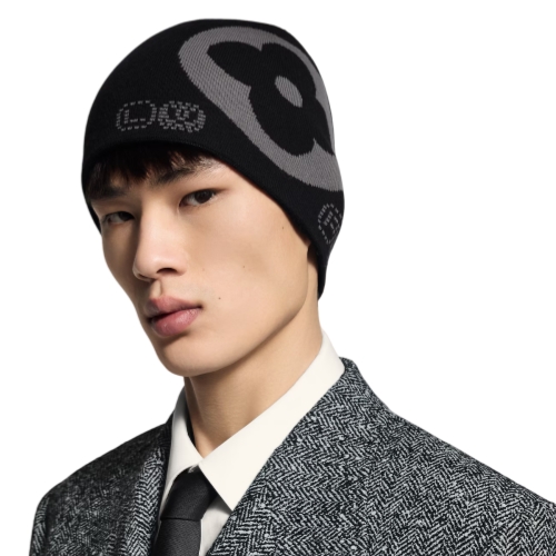 A comfortable, cotton style that suits every temperature, the LV Fit Monogram Beanie brings together the House heritage and contemporary cues in a dynamic look. From the Pharrell Williams and Nigo partnership, one side of the hat highlights an oversized Monogram Flower, with the collaborators' initials and LV, and the Monogram is printed allover on the reverse.