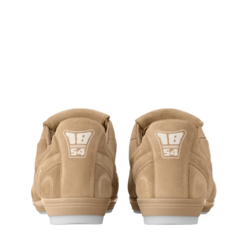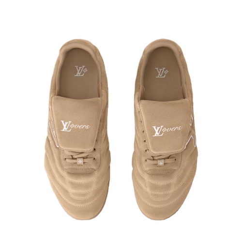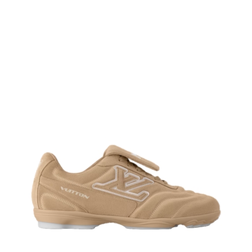The LV Footprint Soccer sneaker is the first soccer-inspired sneaker created by Pharrell Williams. Made of suede calf leather with a distinctive faded effect, its streamlined design is emphasized by the dynamic LV Initials on the side. The removable tongue sports the Lvers United emblem inspired by football teams, while the rubber footprint outsole incorporates several House signatures.