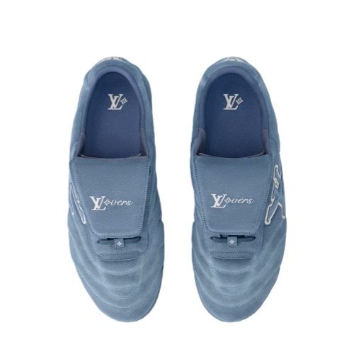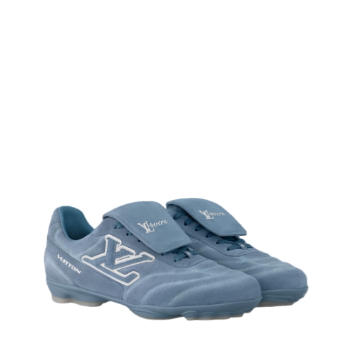 The LV Footprint Soccer sneaker is the first soccer-inspired sneaker created by Pharrell Williams. Made of suede calf leather with a distinctive faded effect, its streamlined design is emphasized by the dynamic LV Initials on the side. The removable tongue sports the Lvers United emblem inspired by football teams, while the rubber footprint outsole incorporates several House signatures.