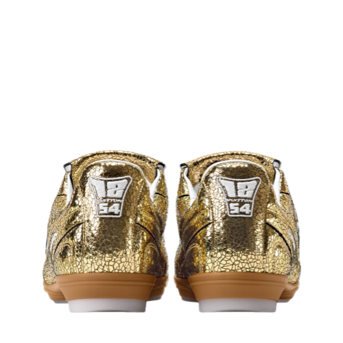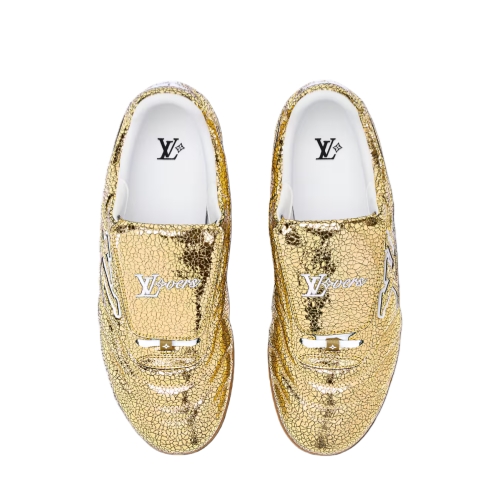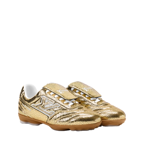 The LV Footprint Soccer sneaker is Men's Creative Director Pharrell Williams' take on the soccer boot. Made of cracked-effect calf leather for a fashion-forward look, its streamlined design is emphasized by the dynamic LV Initials on the side. The tongue sports an LVers emblem inspired by football teams, while the rubber footprint outsole incorporates several House signatures.