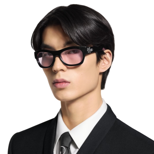 The LV Frog Round Square sunglasses celebrate contemporary references cherished by Pharrell Williams and Nigo and the heritage that cemented Louis Vuitton as a house built on craftsmanship. The shape is influenced by Japanese street style and rockabilly subculture, while at the hinge, silver-toned frog locks in an antique finish recall the House's trunk-making origins.