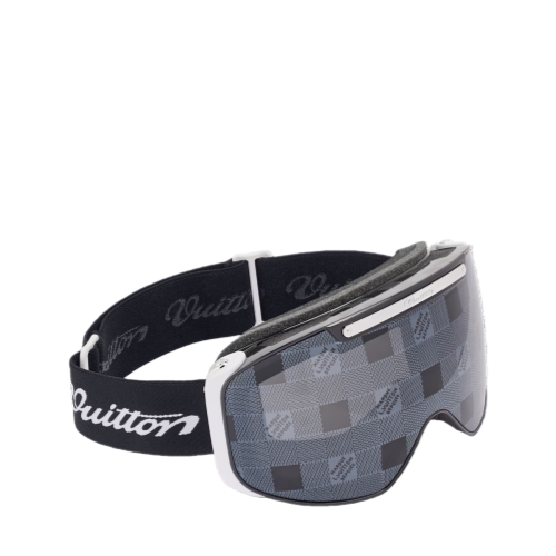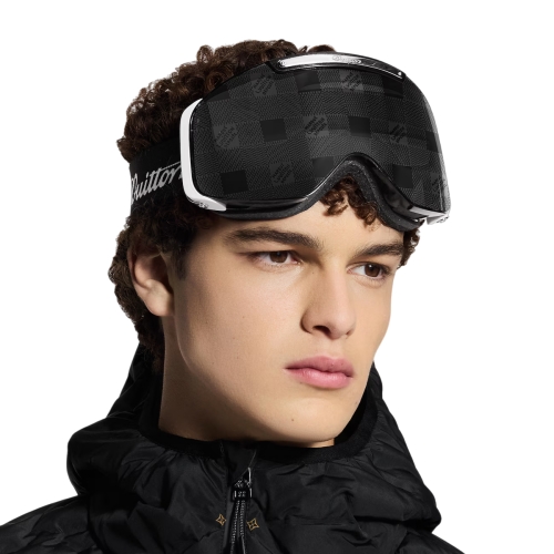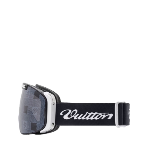 The LV Frost ski mask balances fashion-forward technical features with a nod to the craftsmanship Louis Vuitton has championed for years. The lenses are covered with the Damier motif and equipped with shiny metal accents that echo the history of trunk expertise, and the snug strap features the cursive "Vuitton" signature.