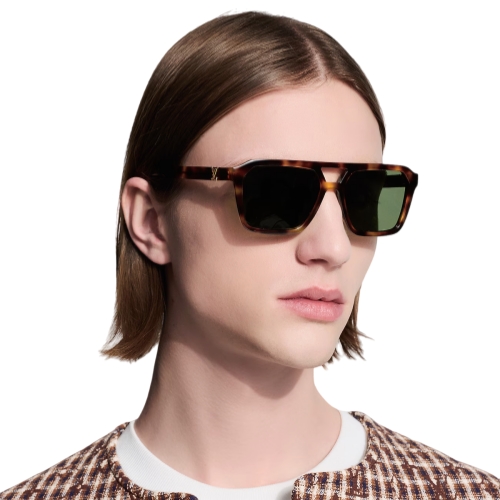 The LV Hit family is coming with a new square shape that interprets the classic pilot shape with an angular silhouette, creating a fresh look with modern tendencies. The metal "LV" signature at the temples adds a dose of classic detailing, and the lightweight etate construction ensures this is a pair that will never lose its appeal, season after season.