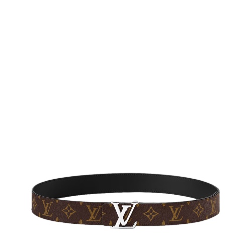 The LV Initials 35mm reversible belt highlights House craftsmanship with its modern, double-sided strap and iconic buckle. Monogram canvas reverses to smooth black calf leather, for a versatile accessory that will enhance both off-duty and business attire. The piece is handsomely offset by a signature LV Initials buckle, cast from polished, palladium-finish metal.