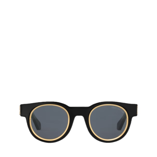 Crafted with Japanese acetate and titanium that stand the test of time, the LV Legacy Round Sunglasses is a round-lensed pair elevated by the coupling of gold-toned lens rims with LV Initials on the temples. This elevates the solid black sunglasses to a luxury style with a modern touch.
