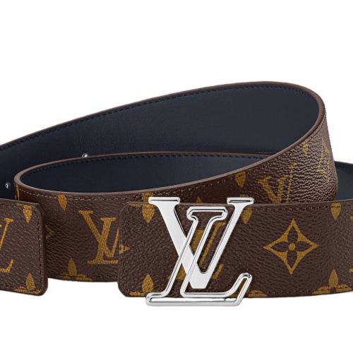 The LV Line 40mm Reversible Belt features two elegant strap options to complement its distinctive buckle. Monogram canvas on one side of the belt encapsulates the timeless style of the House, while calf leather on the reverse creates a more subtle look. The outlined 'L' of the LV Line polished detail adds a modern twist to both strap styles.