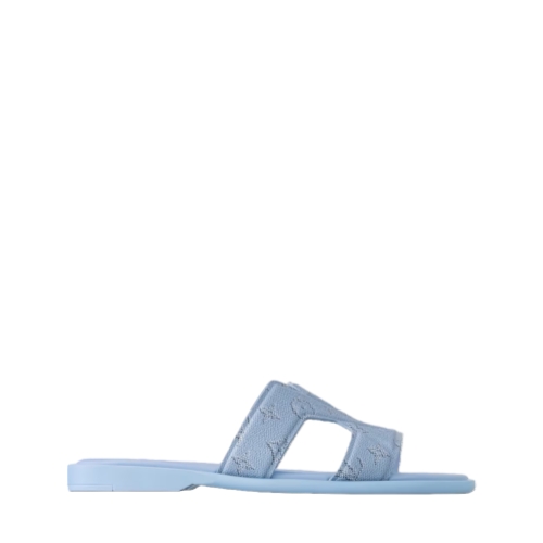 Monogram grained calf leather complements the stylish design of the LV Oasis mule. This relaxed model is distinguished by the discreet signature provided by the interlaced LV motif on its upper. It is finished with a supple, lightweight rubber outsole with the Louis Vuitton Paris signature.