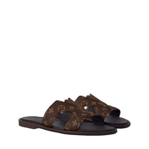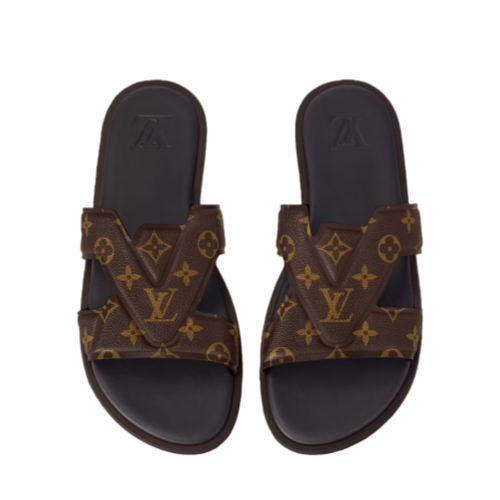 This iteration of the LV Oasis mule comes in Monogram grained calf leather, which replicates the look of Louis Vuitton's iconic Monogram canvas. This relaxed yet refined style is distinguished by the graphic, interlaced LV motif on its upper. It is finished with a supple, lightweight rubber outsole for optimum comfort.
