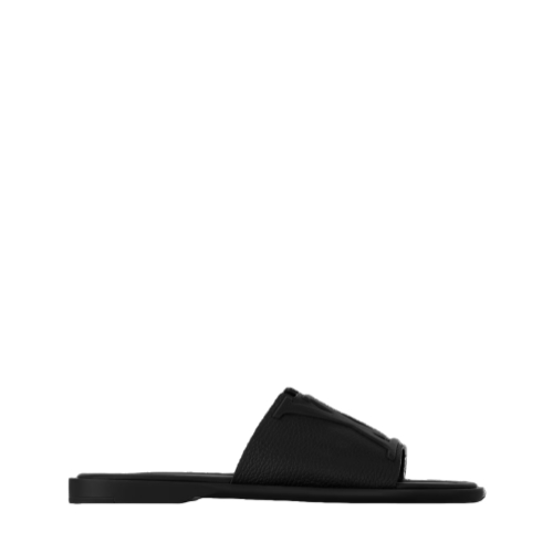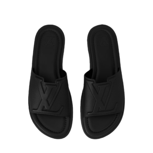 The LV Portofino mule is a casual-chic style made of supple, grained calf leather. Its wide front strap features a distinctive V-shaped cut-out and a raised LV Initials signature. This model has a leather insole stamped with the LV Initials and a rubber outsole bearing the Louis Vuitton signature.