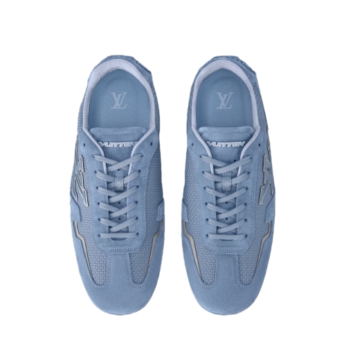 The LV Rally sneaker is a modern, streamlined style in suede calf leather and mesh. It features a car-shoe construction and a rubber-pad outsole for suppleness and lightness. Key details are the dynamic LV Initials on the side, as well as Vuitton signatures on the tongue and outsole, and Louis Vuitton in script lettering at the back.