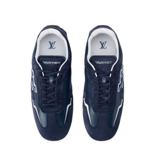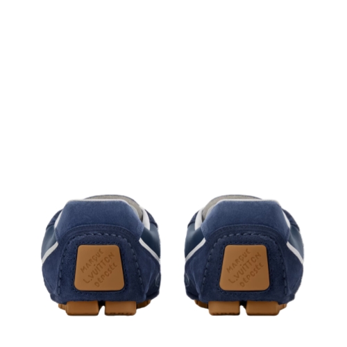 This edition of the LV Rally sneaker combines plain and suede calf leather, creating a refined, tone-on-tone effect. Touches of white highlight key details of this design, including the dynamic LV Initials on the side. This model has a car-shoe construction for suppleness and lightness, while the outsole is composed of Damier-pattern rubber pads.
