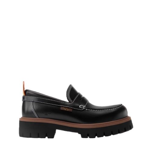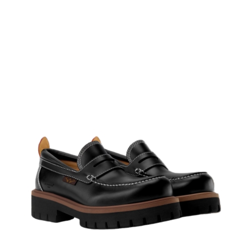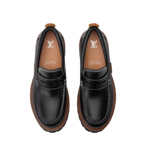 The LV Remix loafer features an upper in smooth calf leather, which is complemented by contrast stitching and refined details. These include a leather back tab inspired by Louis Vuitton leather goods and a label in Monogram canvas on the side. The chunky, treaded outsole in lightweight rubber creates a distinctive, fashion-forward silhouette.