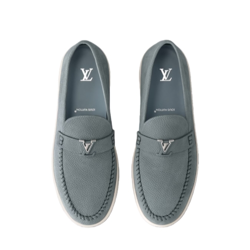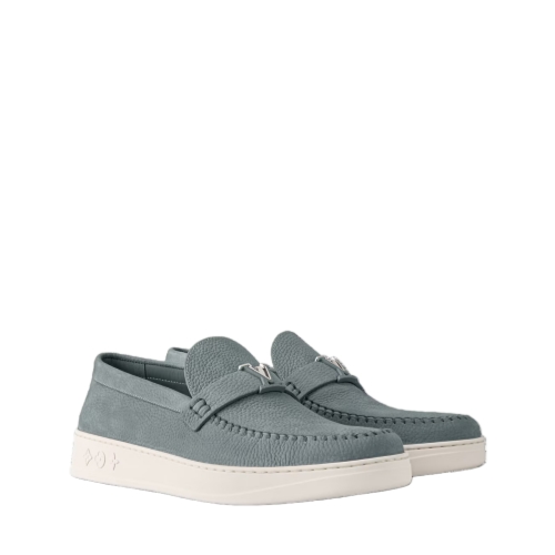 The LV Resort loafer is revisited this season in grained nubuck calf leather for a supple feel and a casual-chic look. This easy-to-wear, slip-on style is signed with a two-tone LV Initials accessory. It comes on a lightweight rubber outsole with three Monogram Flowers on the side and a pattern of Monogram Flowers on the tread.
