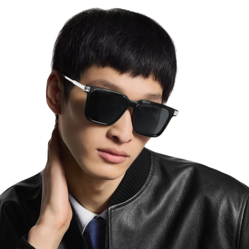 The LV Rise Square Sunglasses introduce a new shape to the men's eyewear collection for Spring-Summer 2022. This piece combines bold acetate frames with thin temples, resulting in a perfectly balanced silhouette. Subtle engravings of the Louis Vuitton signature and the Monogram motif pay tribute to the heritage of the House.