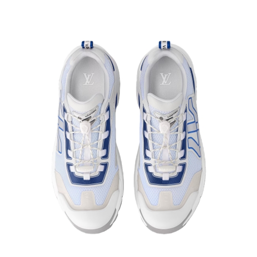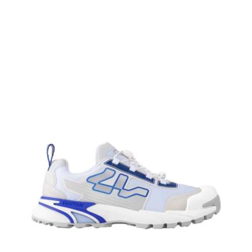 The LV Runner Tatic sneaker is an avant-garde model which combines elements of running and hiking shoes. The upper features a mix of technical materials, including mesh and tape, and a quick lacing system. The design is energized by flashes of color, notably on the graphic LV symbol on the side and the ultra-lightweight rubber outsole.