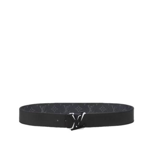 The LV Shake 40mm Reversible Belt offers two attractive styling options: one side is made from Monogram Eclipse canvas, while the other is fashioned from smooth black calf leather. This season, the signature LV Shake buckle boasts a new finish that combines polished silver-color finish with deep black matte lacquer for a versatile accessory with an on-trend edge.