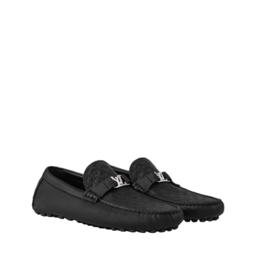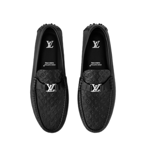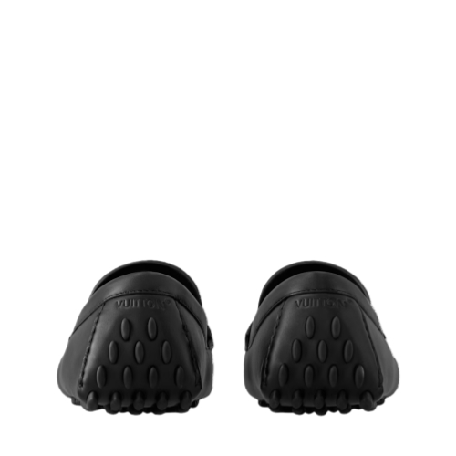 The LV Silverstone moccasin features a refined play on Louis Vuitton signatures: the calf-leather upper is embossed with the Monogram pattern and embellished with an LV Initials accessory, while the outsole features rubber nubs replicating the squares of Damier canvas. This car shoe has a lightweight tubular construction and a hand-stitched vamp, testifying to the House's savoir-faire.