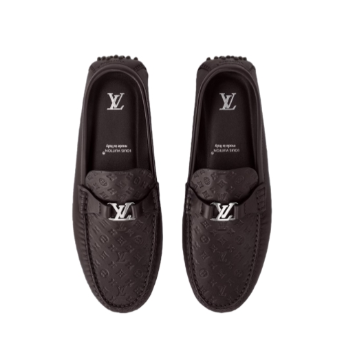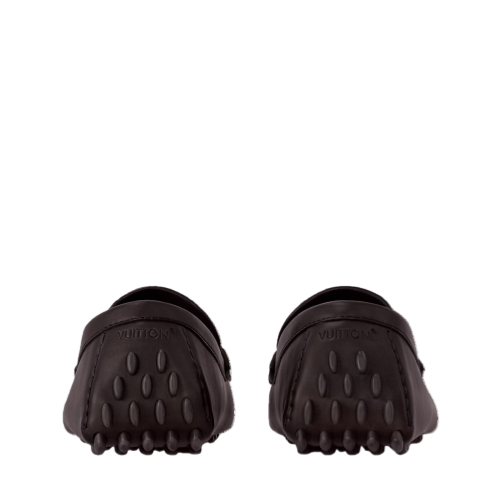 The LV Silverstone moccasin features a refined play on Louis Vuitton signatures: the calf-leather upper is embossed with the Monogram pattern and embellished with an LV Initials accessory, while the outsole features rubber nubs replicating the squares of Damier canvas. This car shoe has a lightweight tubular construction and a hand-stitched vamp, testifying to the House's savoir-faire.