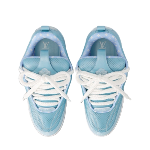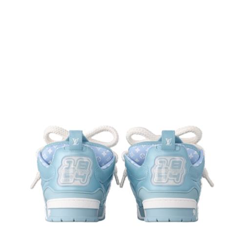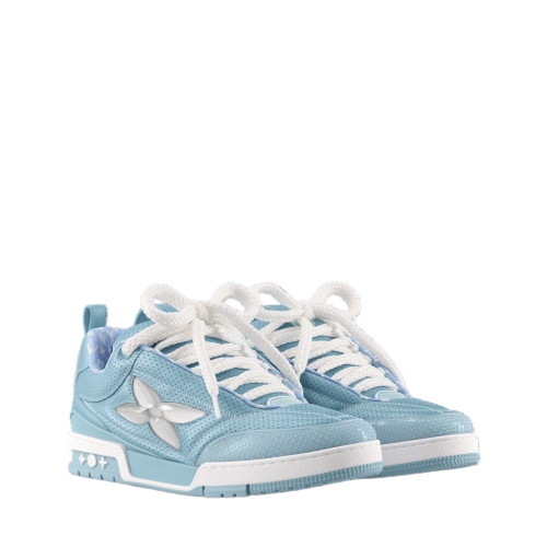 The LV Skate sneaker is reimagined this season in metallic and perforated calf leather. Inspired by Nineties' skate shoes, this model is notable for its thick double laces and exaggerated, padded tongue and collar. Its many signature details include a large Monogram Flower on the side and Vuitton since 1854 at the back.