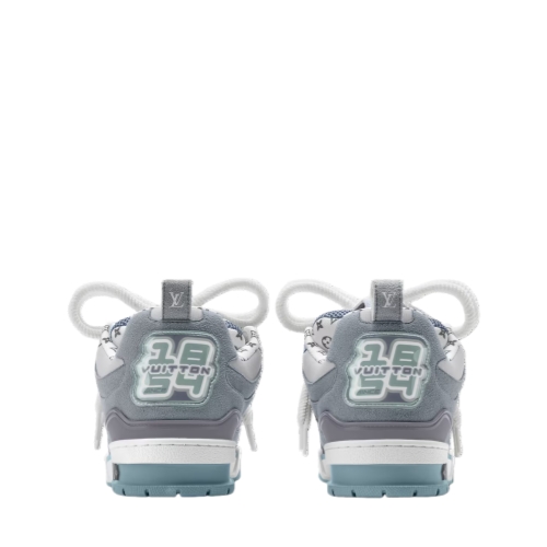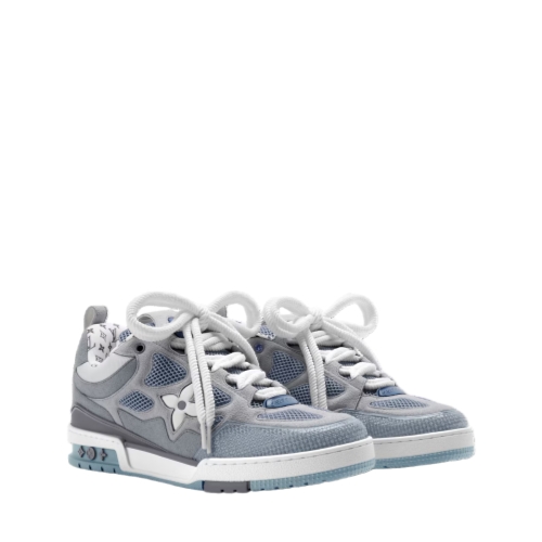 The LV Skate sneaker is revisited in suede calf leather and a neutral palette that will complement a wide range of looks. Referencing Nineties' skate shoes, this model is characterized by its exaggerated tongue and multiple signature details, including a Monogram-pattern lining and a Monogram Flower on the side. It is finished with a two-tone rubber outsole.
