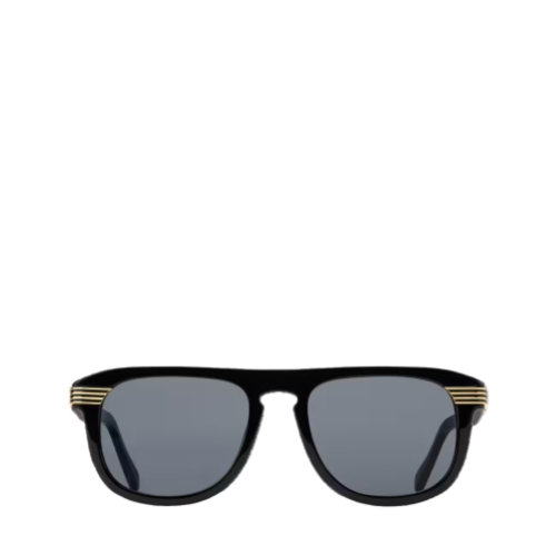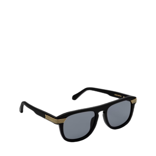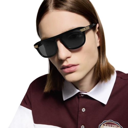 The LV Slide round square sunglasses are a fashionable fusion of two flattering shapes with Louis Vuitton savoir-faire. Crafted from classic black acetate, the pair sports a keyhole bridge and black lenses for a sporty-meets-streetwear spirit. Four gold-toned metal stripes on the temples, culminating in the LV Initials, evoke a sense of speed and thinking toward the future.