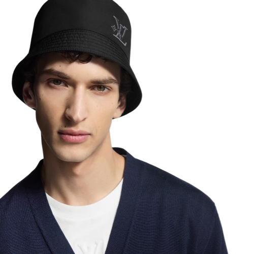 The LV Smash bucket hat is both practical and fashionable. The full-coverage silhouette in a water-repellent fabric ensures maximum protection from the weather, while the classic black keeps a rainy outing refined with an embroidered LV Smash signature, in a matching dark hue. Its monochromatic appeal and modern look are a welcome addition to any gloomy day.