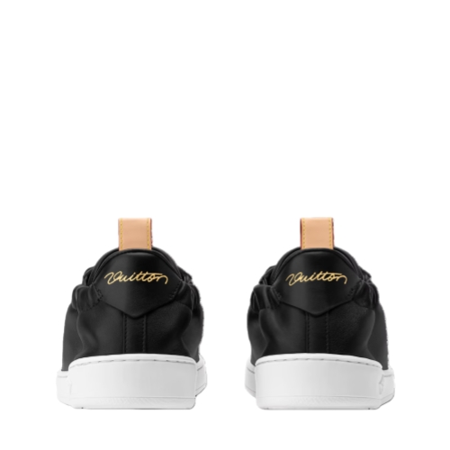 The LV Soft sneaker is a refined model crafted from exceptionally soft calf leather. In addition to laces, it features an elasticized heel for an easy, slip-on fit. The upper is embellished with an LV Initials label and a back loop in the House's emblematic natural leather, as well as a Pharrell Williams-designed Vuitton signature at the back.